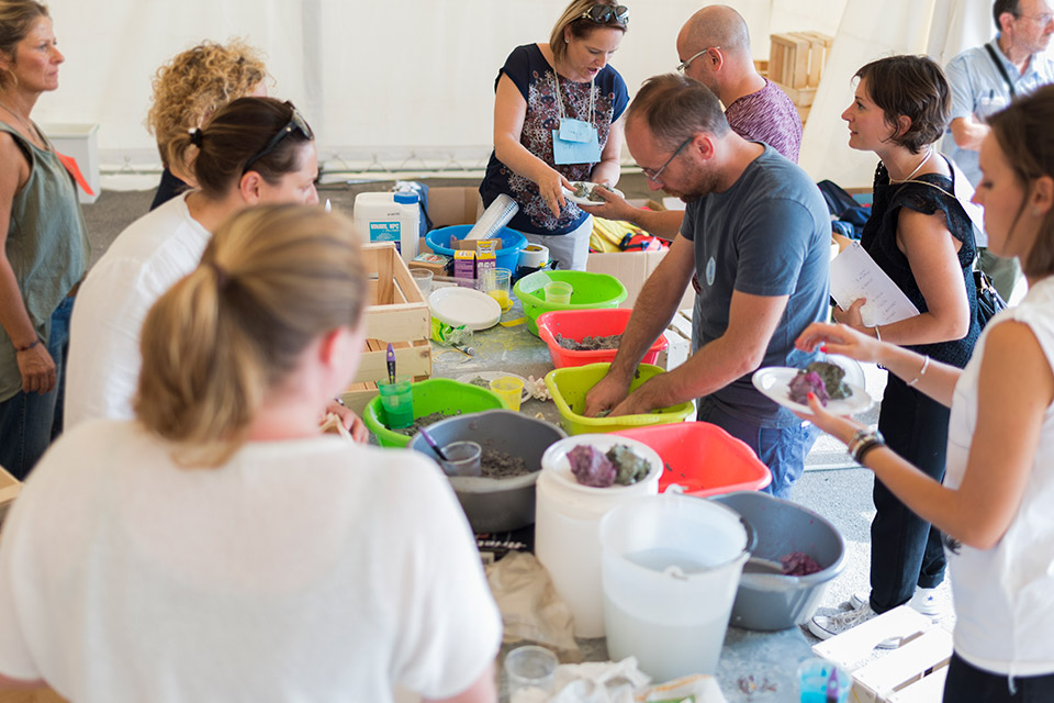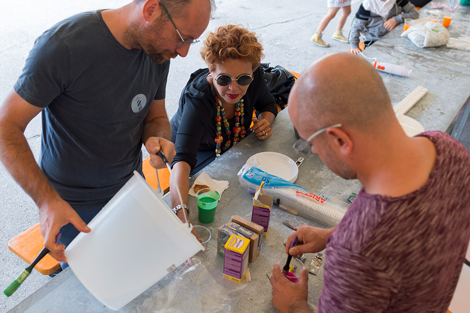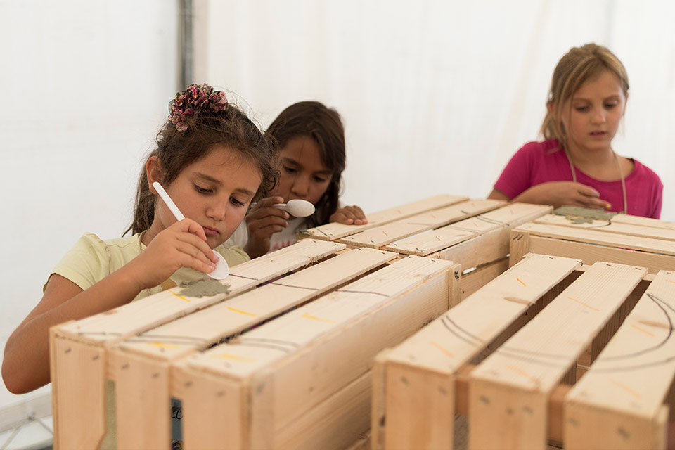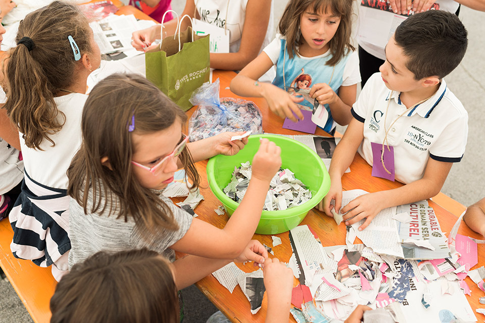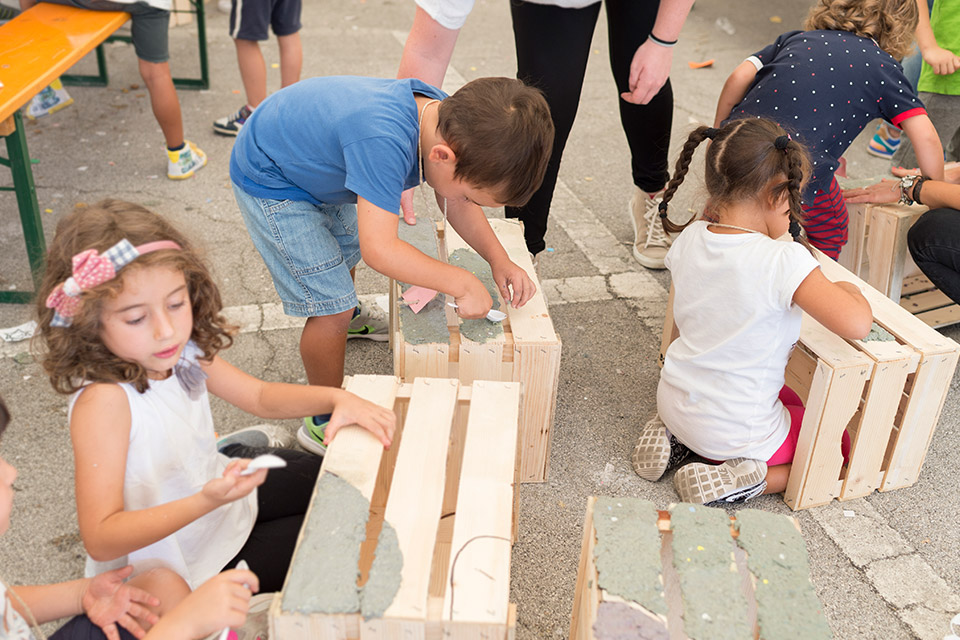 Il progetto ha previsto una fase preliminare di cooperazione tra genitori e figli, invitati a raccogliere qualsiasi tipo di materiale cartaceo utile a comporre un archivio: dai quotidiani alle riviste, dalle ricette mediche alla carta del gelato, dai biglietti del treno agli scontrini della spesa fino ai fumetti o ai vecchi quaderni dei compiti. Con questa carta, sminuzzata e frammentata, i ragazzi hanno realizzato cartapesta di vari colori, utilizzata per decorare delle cassette di legno - del tipo usato per conservare frutta e ortaggi, ma anche reperti archeologici e materiali vari – che, una volta impilate, hanno rivelato un’immagine giocosa precedentemente realizzata dagli artisti.