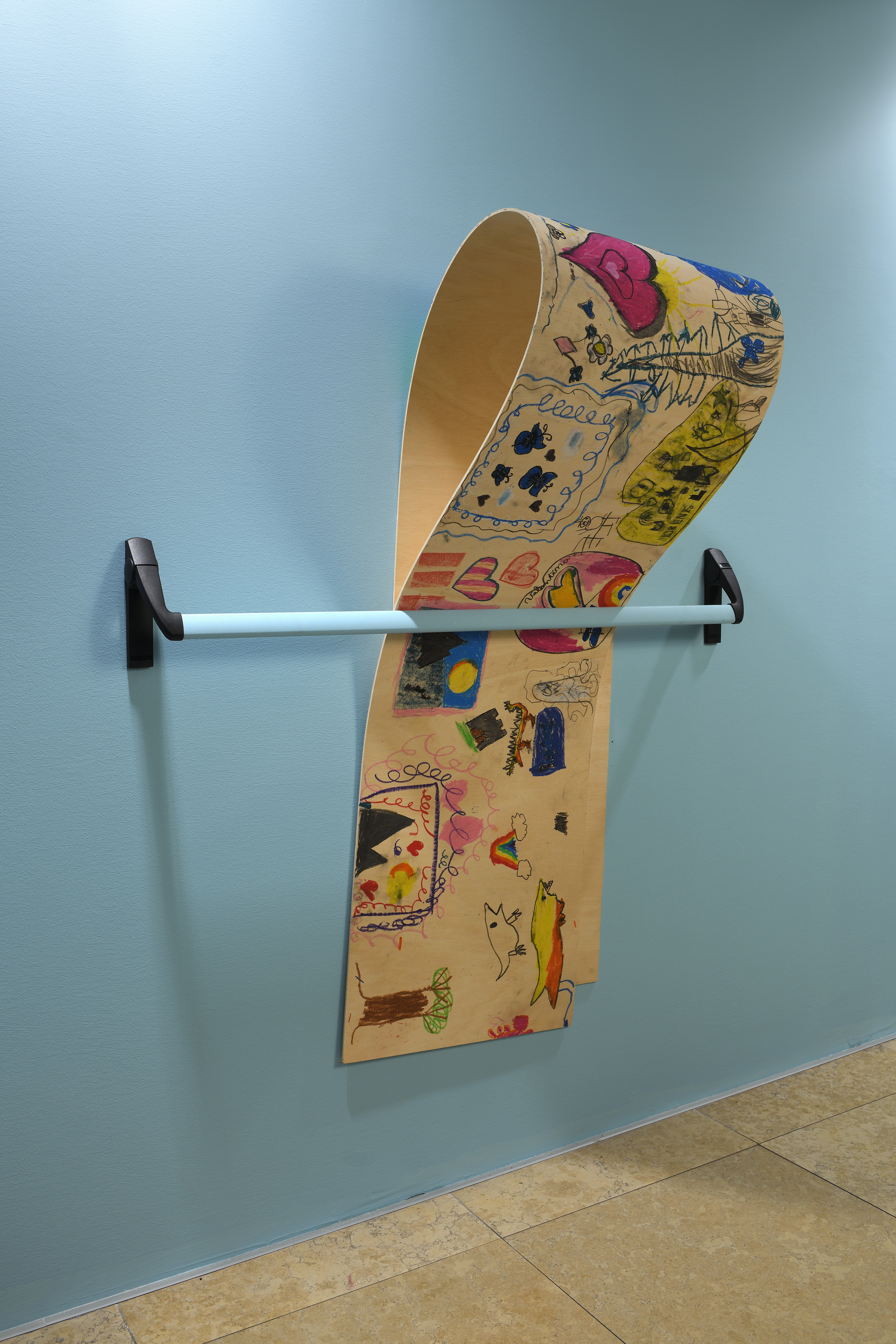 Guidati da Giovanni Termini, i piccoli partecipanti si sono cimentati in un’attività creativa, dando forma alla loro idea di ciò che si cela “dietro una soglia”. Su grandi pannelli di legno multistrato, ciascuno ha rappresentato con colori a pastello, acrilici e materiali vari, la propria visione di ciò che si nasconde “dietro ai propri occhi”. I pannelli, progettati per essere incastrati ad arte in maniglioni antipanico, sono stati assemblati in un’installazione permanente allestita negli spazi aziendali: un’opera collettiva che simboleggia il passaggio, la scoperta e la possibilità di guardare oltre ciò che è visibile.